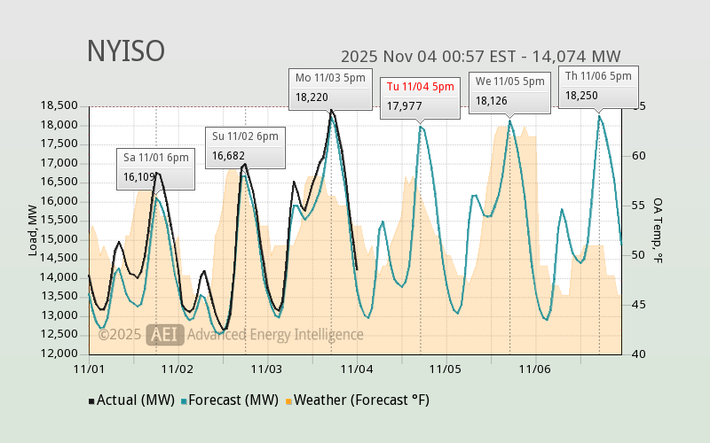 Sign Up for ISO email and SMS alerts to recieve timely notices of ISO demand that could have an impact on your facility's ICAP tag and FY18 demand charge pricing if your facility is on a Time Of Use ("TOU") electric utility meter. Consult your electric utility bill and any commodity agreements you may have for details. AEI now provides coverage for 5 of the 7 major grid operators in the U.S. and will soon be adding ERCOT and SWPP.